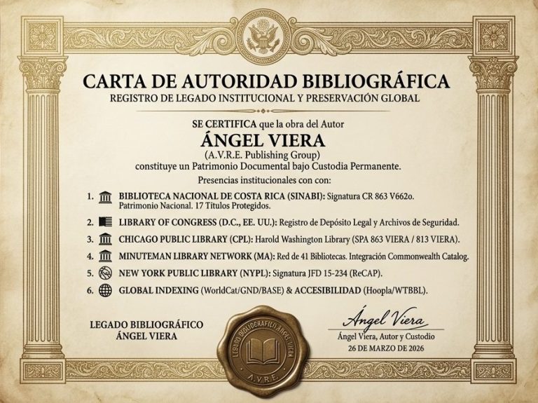 Esto significa que mis libros no existen como registros aislados, sino como parte de una identidad autoral formalmente establecida dentro de sistemas públicos de conocimiento. Bajo esta estructura, mi trabajo queda identificado, agrupado y preservado con continuidad, permitiendo que cada título dialogue con los demás como parte de una visión literaria integral.